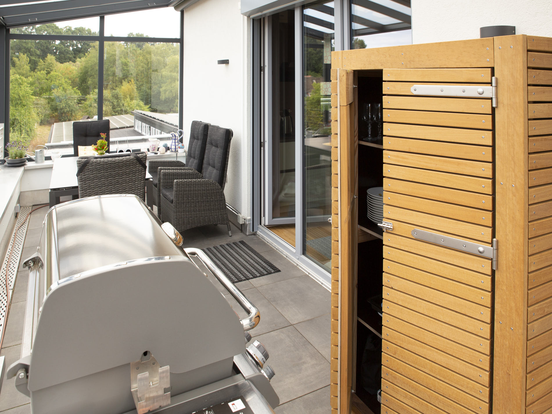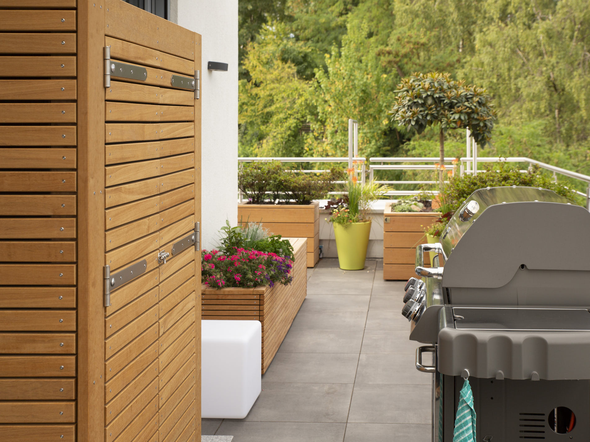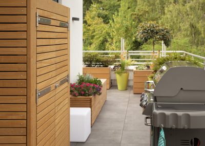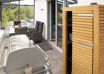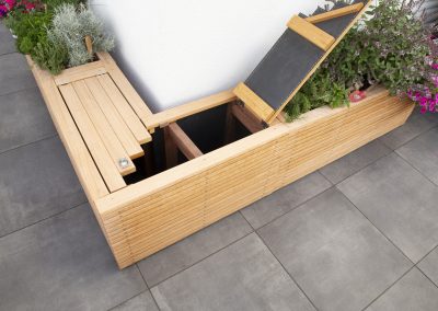 Manchmal braucht es mehr als schöne Sitzmöbel. Wir planen und realisieren individuelle Sitzbänke mit Stauraum, praktische Schränke für Garten- und Grillutensilien sowie kleine Gartenhäuschen, die sich harmonisch in Ihre Terrasse einfügen.