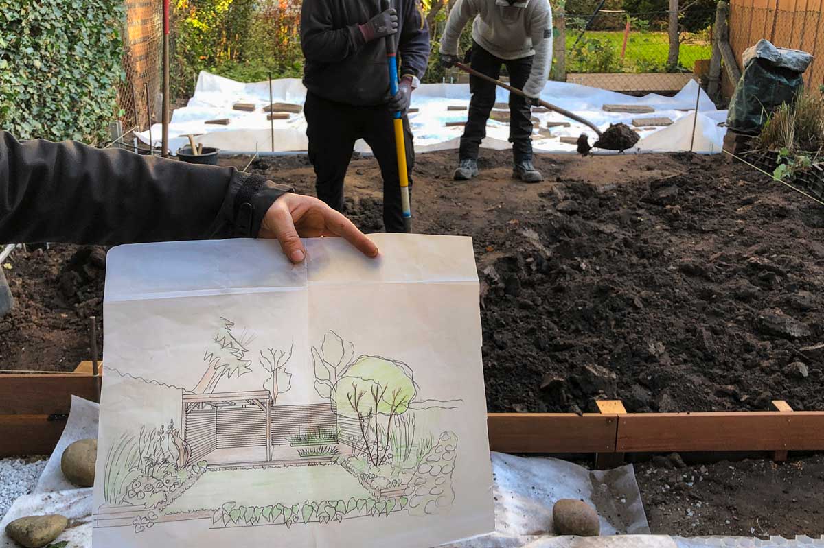 Zusammen mit meinen Mitarbeitern Conrad und Aiko setzen wir viele der Projekte selbst um. Hierbei spielen die Größe des Gartens und Ihre Zeitplanung eine wichtige Rolle. Die regelmäßige Pflege führen wir gerne für Sie - oder mit Ihnen zusammen - aus.